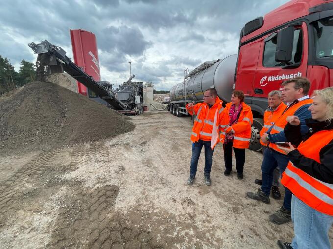 Staatssekretärin begleitet Einsatz der mobilen Kaltmischanlage an der B 5